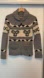 Cozy gray cardigan with cream and black patterns. Features a shawl collar and front pockets and front zipper. Perfect for layering during winter. Very cozy, made of 100% lamb wool. Gently used, in great condition.