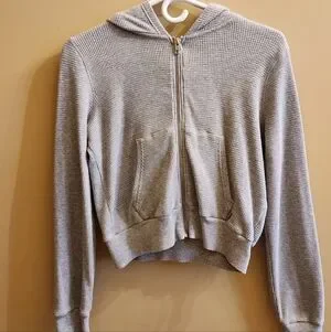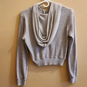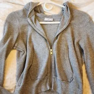 Cozy ribbed cardigan with a hood. Features a full zip. Women's size small.