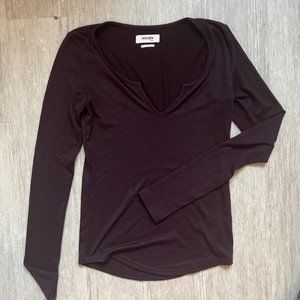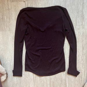 Very sretchy size S fits up to an L. Long sleeve burgundy great condition
