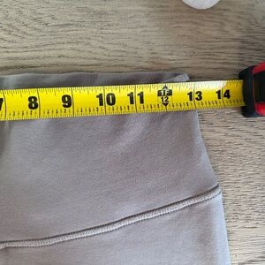In good condition. In the modern taupe colour. Cotton (not a spandex-y material). I don't remember the style name
