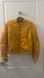 Stylish mustard bomber jacket by TNA. Features ribbed cuffs and hem. Classic zip-up design.