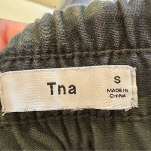 TNA Olive Green/black combat cargo pant elastic waist drawstring women’s Small
