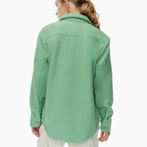 Introducing the TNA Polar Shirt Jacket, a cozy fleece button-up shirt jacket, in a stylish shade of green, and in Size Small. This versatile shacket (shirt + jacket) is perfect for adding a layer of warmth and style to your wardrobe.