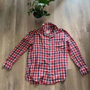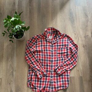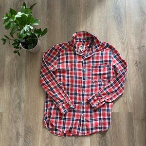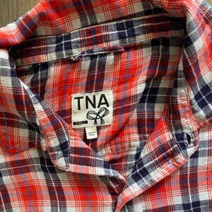 TNA (Aritzia) Red Light-Weight Flannel Style Button Down Shirt. In excellent condition with no visible flaws or defects (tears, stains, damage, pilling). Great closet staple, & perfect for spring and casual wear! A very transitional piece!