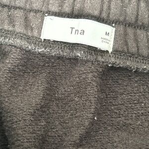 Super cute TNA black sweatpants skirt. Skirt has pockets and drawstring. Worn. 24 inches long.