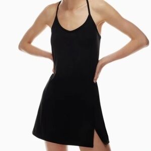 This tennis mini dress with a racerback silhouette and V neckline. It’s made with Power Sculpt - sweat-wicking fabric with a slick, cool touch and sculpting feel.