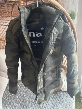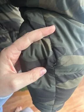 Camo size XXS fits like a S/M small unstitch left sleeve