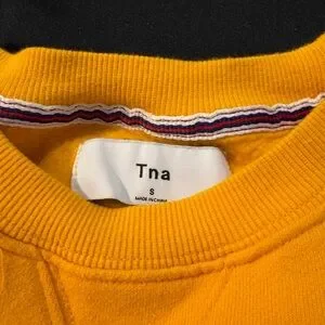 Bold orange crewneck sweater by TNA. Ideal for casual wear. Soft and comfortable fabric.