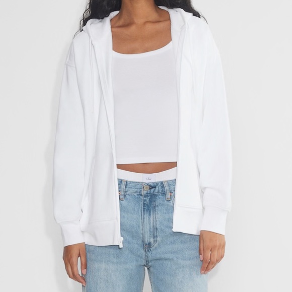 TNA Aritzia Terry Cozy Fleece Boyfriend Style White Hoodie