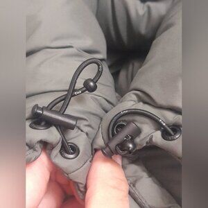Has adjustable drawstring at hood.