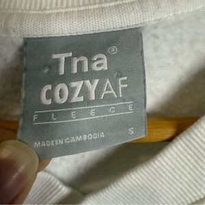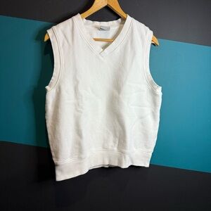 This TNA vest features a sleek, sleeveless design in a crisp white color, perfect for layering. Crafted from a sweater-like material, it offers a classic V-neckline and ribbed edging for a timeless look. Ideal for casual or business casual occasions, this vest adds a touch of elegance to any outfit.