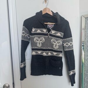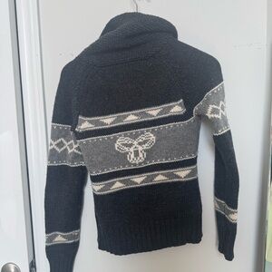TNA Women's Black and Gray 100% wool cowichan Sweater zip up M