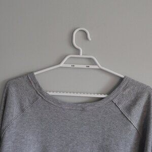 TNA Women's Sz M Grey Alder Crewneck Waffle Knit Thermal Long Sleeve Stretch Top