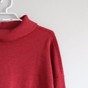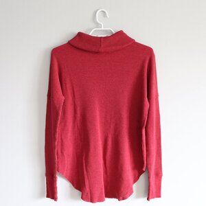 TNA Women's Sz S Red Cowl Neck Oversized Waffle Knit Pullover Thermal Top