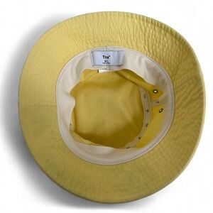 Elevate your accessory game with this vibrant yellow bucket hat from TNA. Crafted from lightweight fabric, it features a classic silhouette with a downward-sloping brim and white embroidered branding on the front. Perfect for adding a pop of color to any outfit while providing comfort and sun protection.