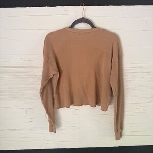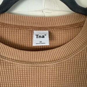 ▫️TNA long sleeve waffle knit shirt in a rich burnt orange-brown shade