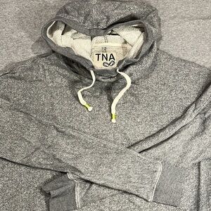 TNA grey cowl neck hoodie. Oversized, really long neck, super cozy. Small hole in right arm, see photos.