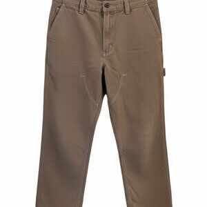 These are a pair of tan or khaki-colored pants with a classic straight-leg fit. They feature standard front pockets, two rear patch pockets, and a utility pocket on the side of the right leg.
