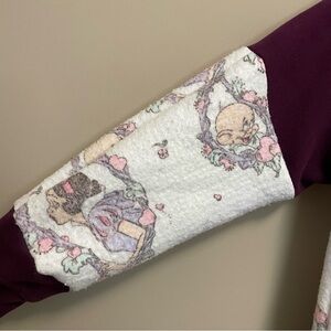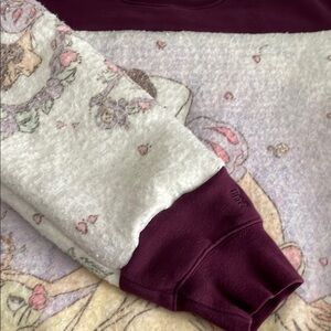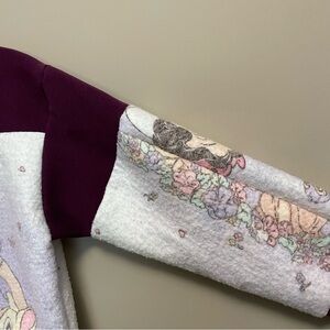 This upcycled sweatshirt combines a purple TNA crewneck sweatshirt and a vintage 80s blanket for a one of a kind look. The vintage Disney print is accentuated by the bold crewneck colour, offering a contemporary twist to a classic style. Approximately a women’s XS or S - please refer to measurements.