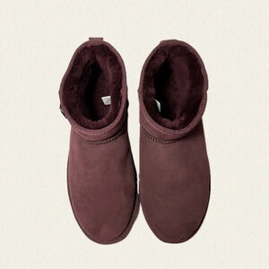 These are sheepskin-lined micro boots with durable rubber outsoles and molded heel cups. They're made from premium water-resistant Australian sheepskin that's naturally moisture-wicking.