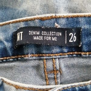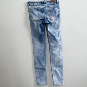 EUC stretchy acid wash skinny jeans with distressed details. Five functional pockets