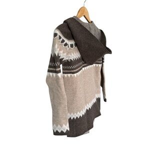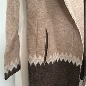 DESCRIPTION: Comfy like a wool blanket! An easy layer for running out the door on Spring mornings! Non belted open front styling and warm merino wool will make this long hoodie a favourite!