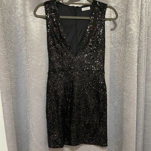 TOBI Black Sequin Deep V Mini Dress - Sexy & Sparkly, Events & Nights Out - Sz M
