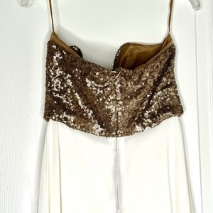 TOBI Bronze Sequin White Sheer Mini Dress Women's Small