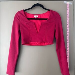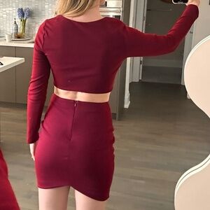 WORN ONLY ONCE. Matching wine crop top with supportive v neck but comfortable. Matching wine skirt with slight slit in the back of the skirt. Fits true to size. Tight but not skin tight. A comfortable set.