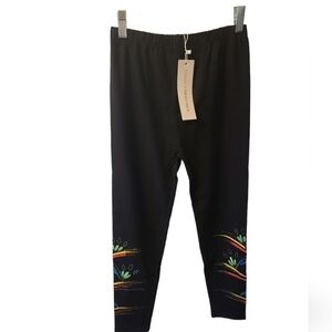 TODAY'S DESIGNER Black Leggings With Floral & Rhinestone Design Size Medium NWT
