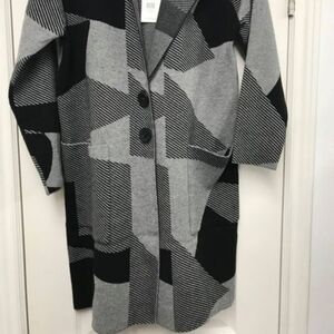 TODAYS Gray Plaid Full Length Shacket Coatigan Jacket With Hood Sz Large NWOT