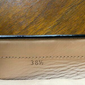 Black patent TOD'S driving mocs. Reposhing, barely worn. They are in good condition with some wear on the left heel—size 8.5.