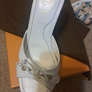 TOD'S High Heel Mules Wedge Sandals White Leather Size US 6.5 EUR Size 37