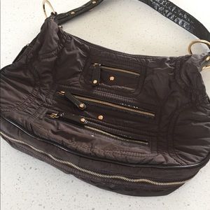 TOD’S Luna nylon patent leather brown media bag