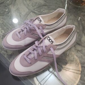 TOD'S purple/Silver suede and leather low top sneakers size 36