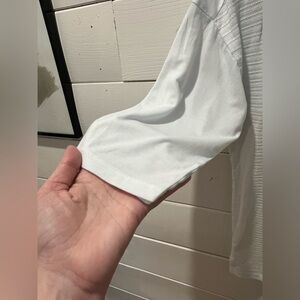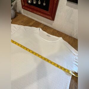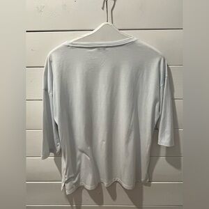 Soft and lightweight short sleeve top in a very pale blue shade. Features subtle horizontal textured stripes on the front and smooth fabric on the back. Relaxed, drop-shoulder cut in a breathable viscose blend for easy everyday wear.
