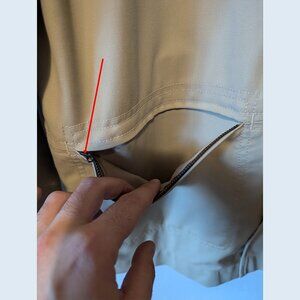 Jacket is in good pre-owned condition. One of the front pocket zipper pull is detached, see picture.