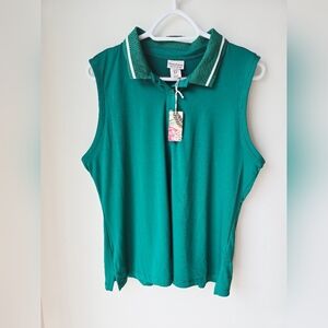 TOMMY BAHAMA ACTIVE Green Teal Sleeveless Polo Top Sport Golf Size XL
