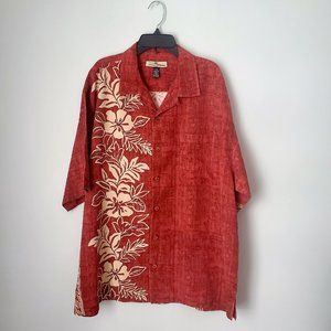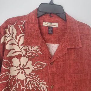 TOMMY BAHAMA Men's Silk Hawaiian Shirt Tropical Floral Print Button Down LARGE