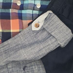 TOMMY BAHAMAS Denim Shirt + NWT OSHKOSH Plaid Bodysuit + Shorts + NWOT Sandals