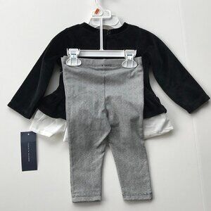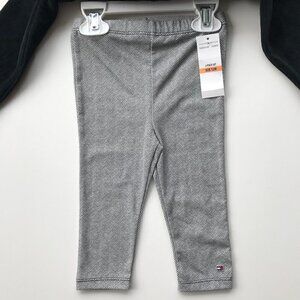 TOMMY HILFIGER Girl 2-Piece Set BNWT Top navy velour white chevron leggings 12mo