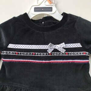 [12mo] Tommy Hilfiger 2-Piece Set BNWT Navy Velour Top Peplum Style with White Underlay