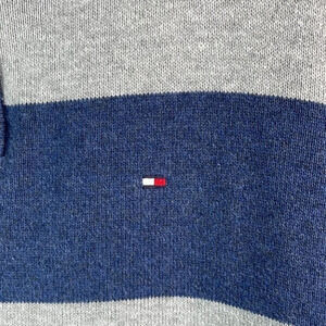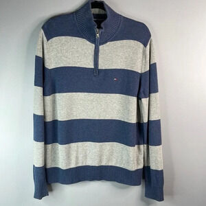 TOMMY HILFIGER Mens Striped Half Zip Sweater Steel Blue Grey Logo Preppy Size M