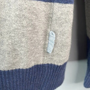 Mens corleone steel blue and gray Tommy Hilfiger wide horizontal striped 1/2 zip mock neck 100% cotton sweater.
