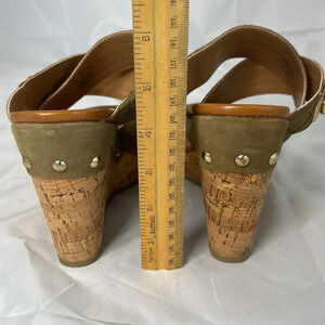 TOMMY HILFIGER Mili Platform Wedge Sandals Olive Green Suede Leather Gold 10