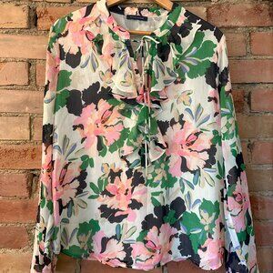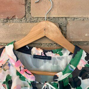 TOMMY HILFIGER Sheer Long Sleeve Blouse – Multicolour Print, Feminine & Flowy