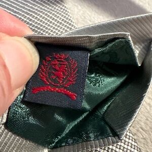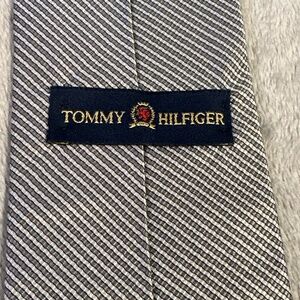 TOMMY HILFIGER Stripe Pattern Silver Gray 100% Silk Neck Tie Made in USA Classic