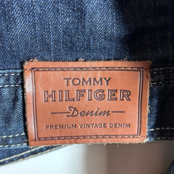 TOMMY HILFIGER Sz L Vintage Mid-Wash Many Pockets Trucker Denim Jean Jacket. Classic cut. Flattering and fun.