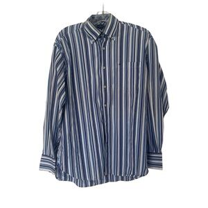 TOMMY HILFIGER - Vintage 80s - Men’s - L/S Casual Dress Shirt - M - Blue Striped
