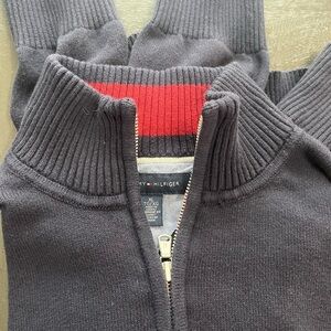 TOMMY HILFIGER | xl | Long Sleeve Quarter Zip-Up Knit Sweater | Navy Blue